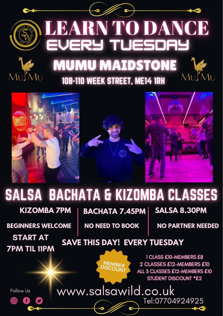 Weekly Classes are run at different locations across Kent, BREDHURST, DARTFORD, MAIDSTONE, BEXLEY, TUNBRIDGE WELLS We run daytime & evening classes for all levels including absolute beginners, Classes last approximately 1 hour with social dancing & practice till late in the evening. Workshops are run at weekends, they are intensive & last approx 2 hours.